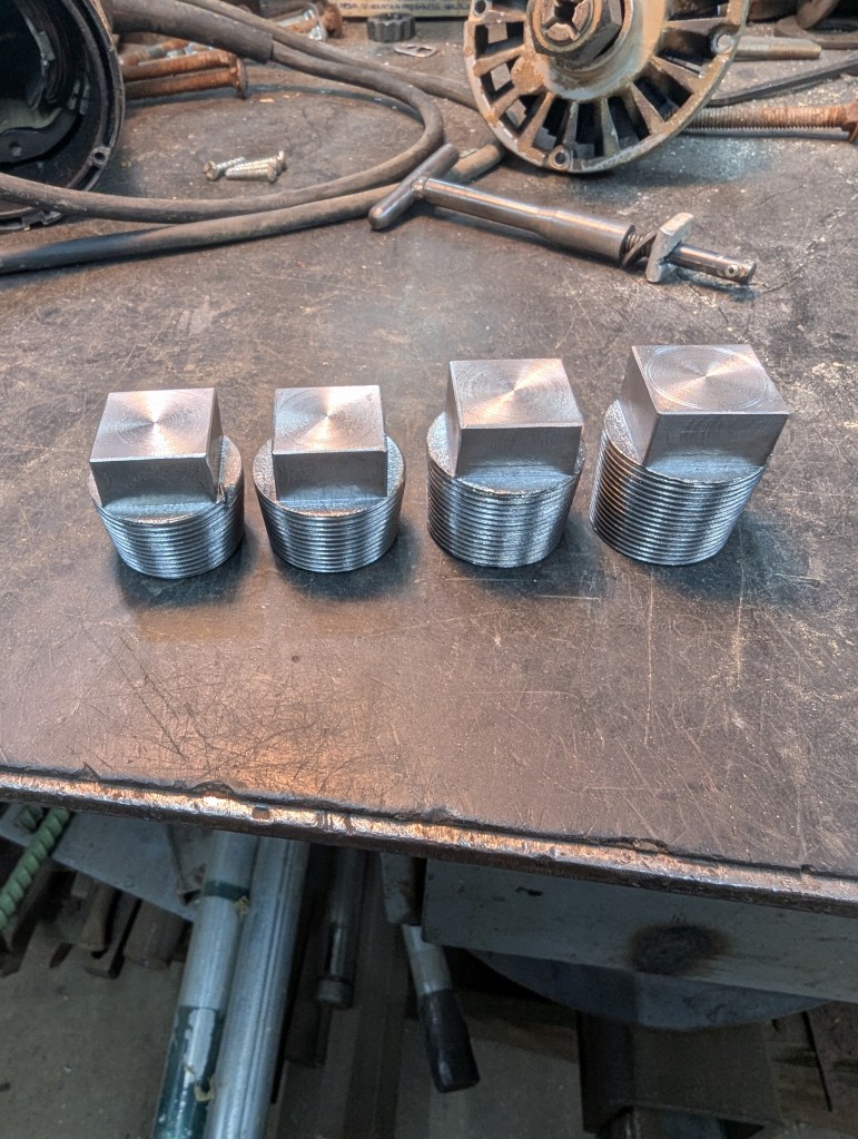 This threaded plug threads into the 2-cylinder transmission output shaft to lock the U-joint yoke to the shaft.