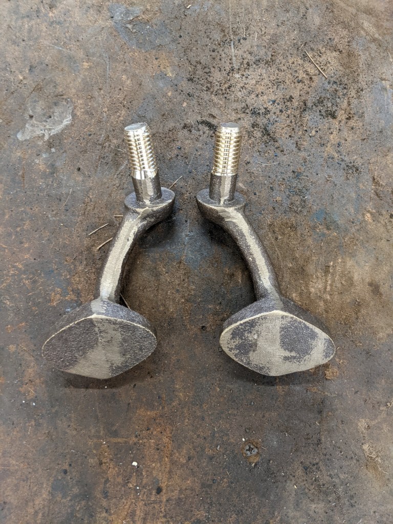 These headlight brackets are based on Maxwell Model Q, but can be used on different models and likely different automotive brands from the same era. They are cast from C875 silicon bronze for strength. I left the mounting brackets undrilled so that you may drill them to exactly match existing holes in your frame rails (if present). The headlight forks are adjustable in width up to about 8 3/8″ maximum center to center. See dimensions in photo above.