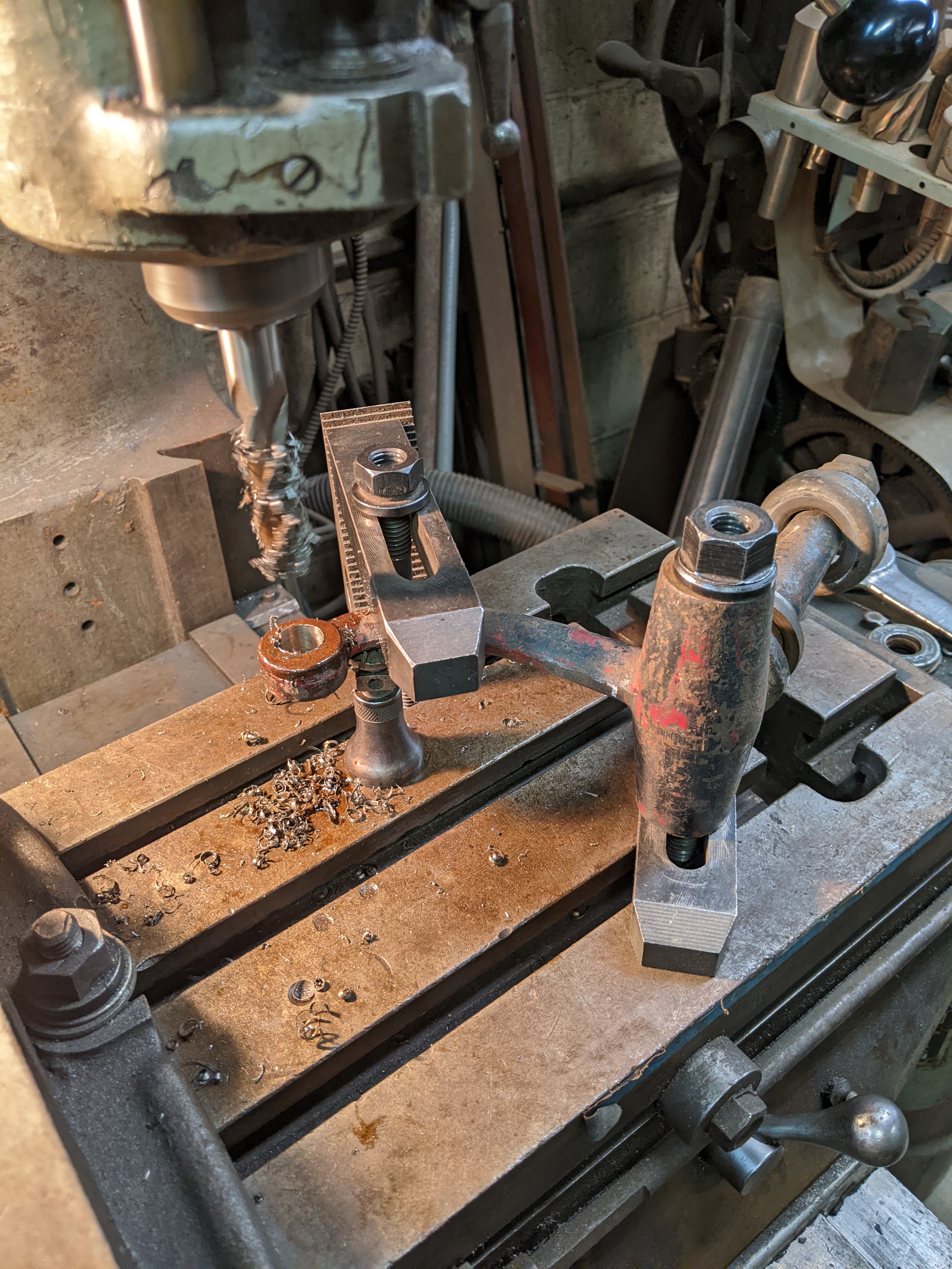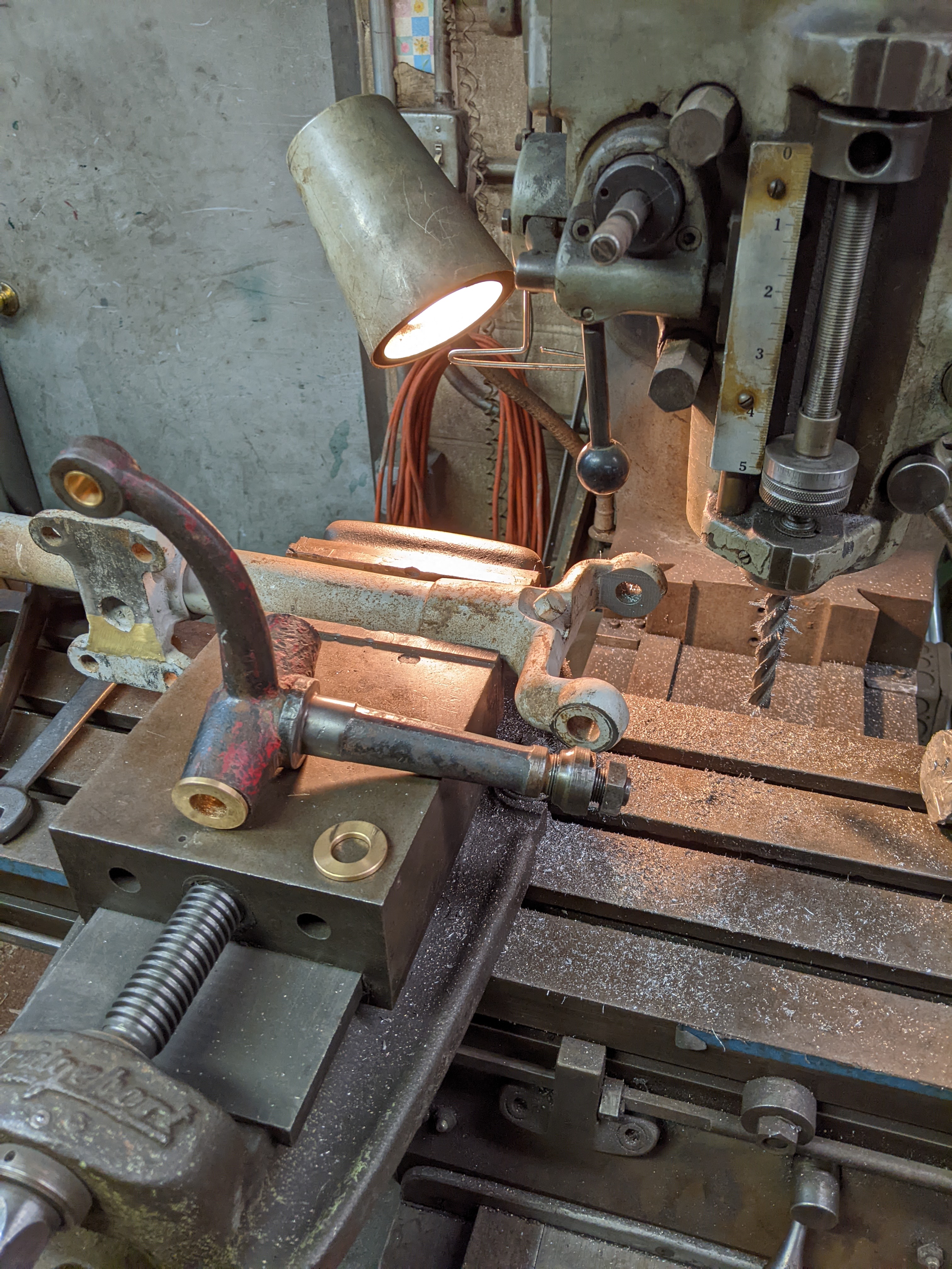 Spindle arms are bored and custom bronze bushings are made/installed.