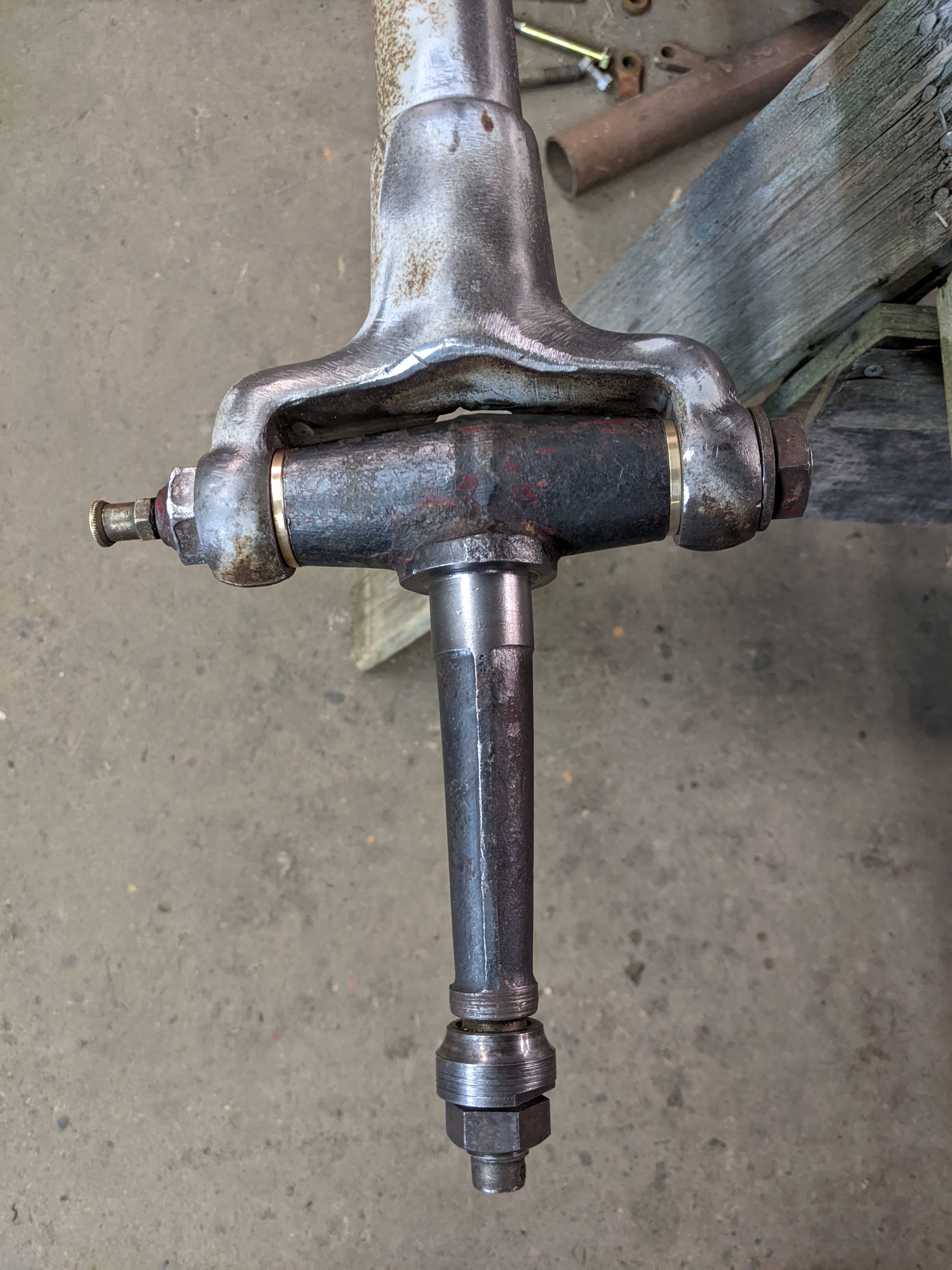 It is common to find very worn front axle components considering the age of these vehicles. I can assist with front axle/spindle/kingpin/tie rod bolt rebuilding to eliminate excessive wear and make your Maxwell drive straight down the road.