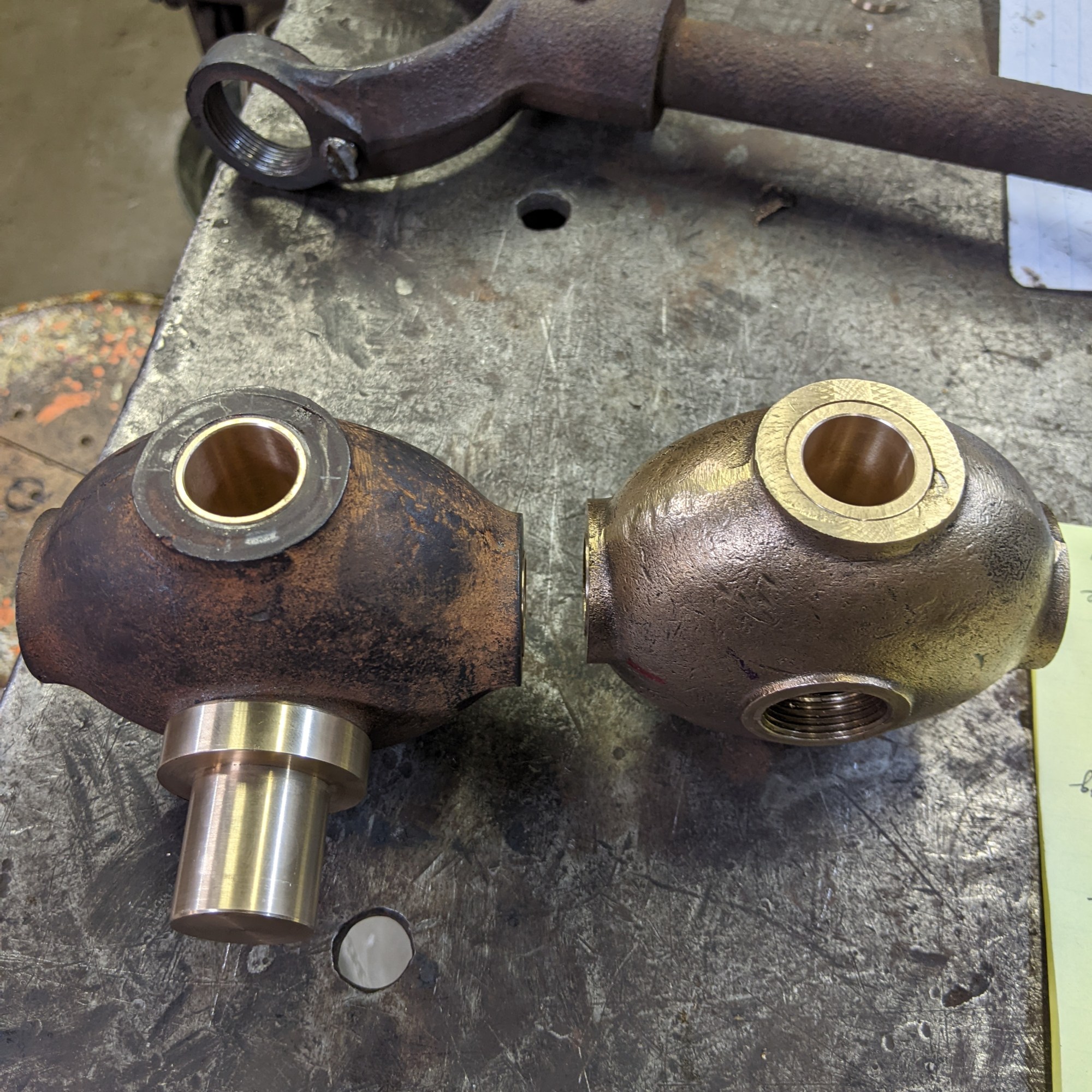 Original Maxwell U-joint bodies are most likely worn from years of service with inadequate lubrication. I can provide a rebuilding service to make your U-joint bodies like new again. The body is bored to eliminate the worn holes and new bronze bushings made to a press fit and installed. I also counterbore and install a neoprene lip seal for each U-joint pin as an attempt to keep the lubrication inside the joint instead of all over the underside of your car and the road.